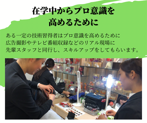 母体であるヘアメイク事務所に依頼される現場での実習を行います。